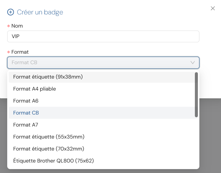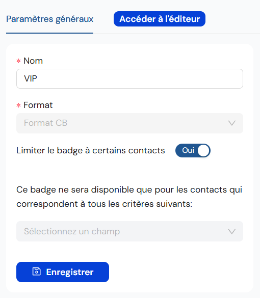 Inscrivez le nom du badge, choisissez son format, puis cliquez sur “Enregistrer” :
