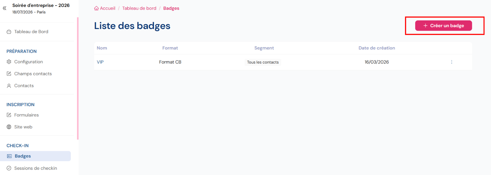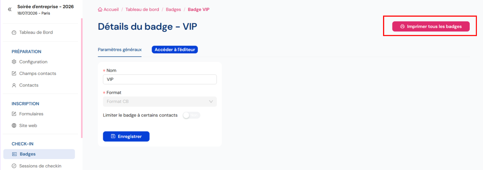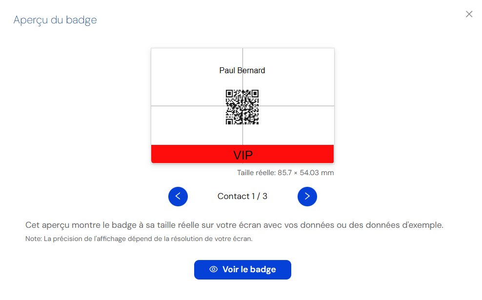 Vous pouvez imprimer directement un badge en cliquant sur “Voir le badge”.
