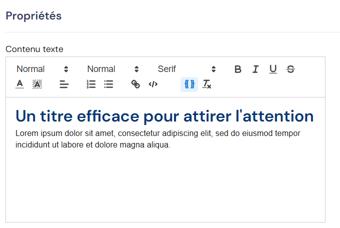 Si vous cliquez sur une section textuelle, cette page s'affiche automatiquement :