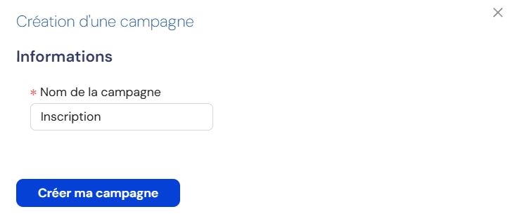 Inscrivez le nom de votre campagne et cliquez sur “Créer ma campagne” :