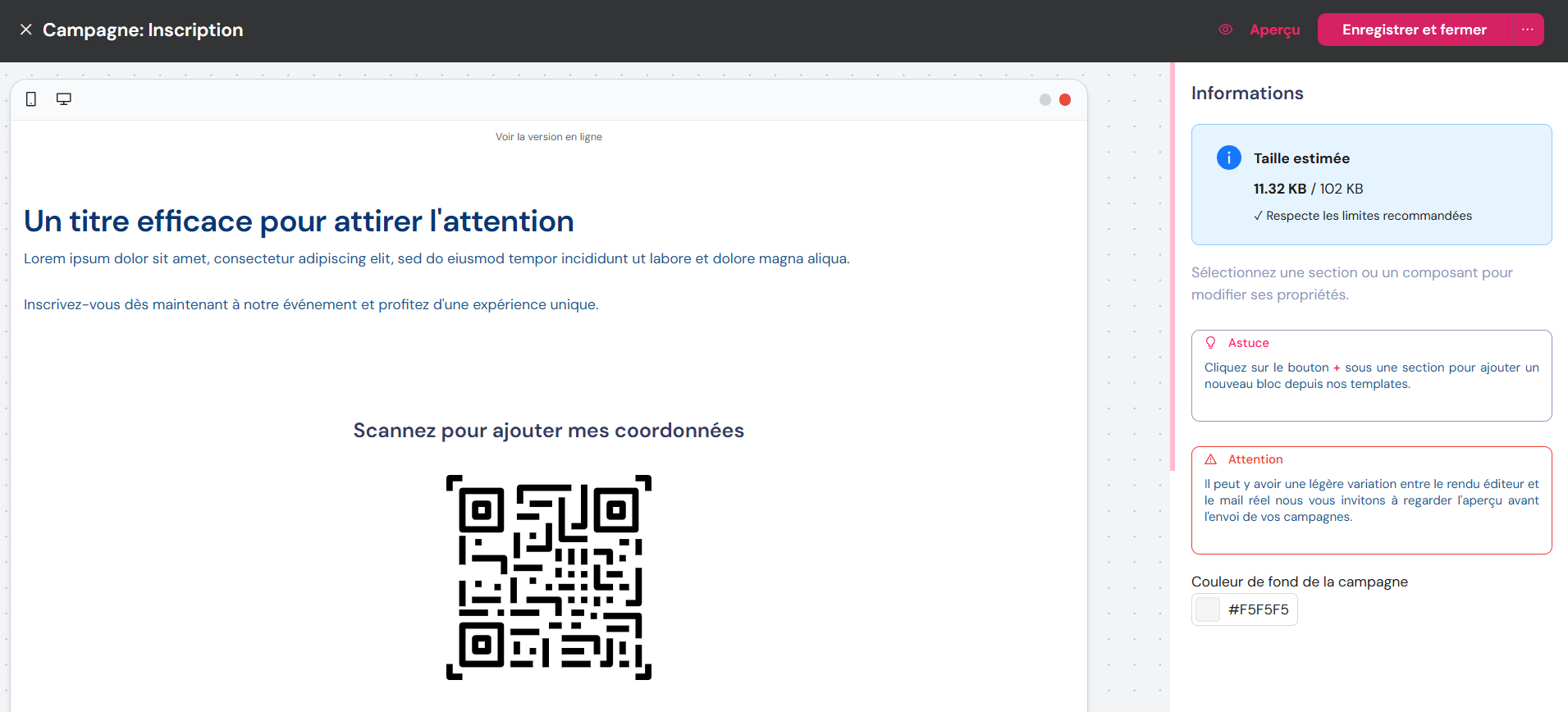 Remarque : vous pouvez consulter l'aperçu de la campagne en cliquant sur “Aperçu” en haut à droite de la page.
