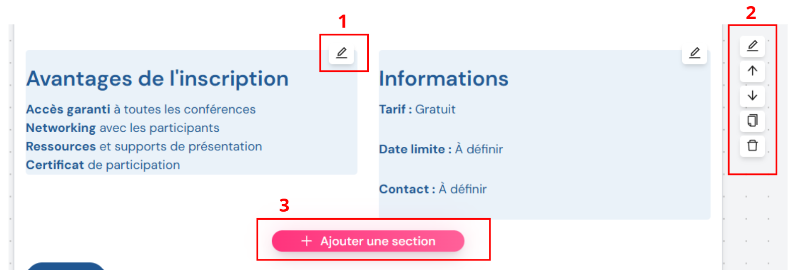 Modifier, remonter/descendre, dupliquer et/ou supprimer la section