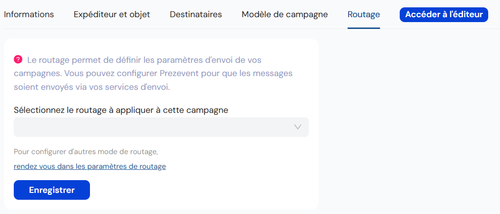 Dans l'onglet “Routage”, vous pouvez choisir le routage à appliquer à la campagne.