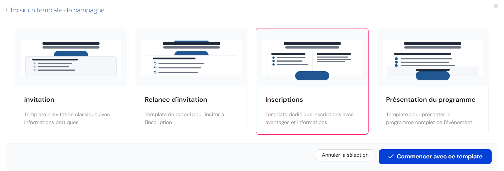 On vous propose plusieurs templates pour créer votre campagne et gagner du temps: