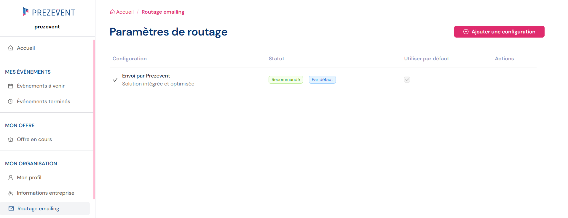 Cliquez sur “Ajouter une configuration” et entrez les informations nécessaires :