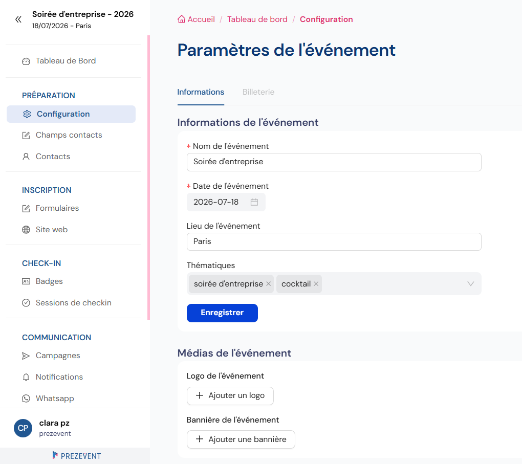 Remarque : Les paramètres de l'événement sont modifiables à tout moment.