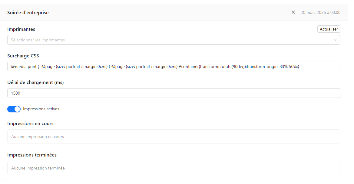 Vous pouvez également configurer le nom du poste d’impression en cliquant sur “Configurer” en haut à droite de l’interface :