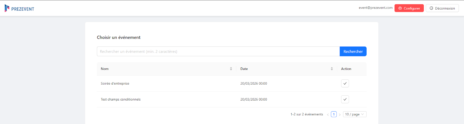 L’onglet “Configuration” concerne les paramètres de l’événement : nom de l’événement date de l’événement lieu de l’événement thématiques logo de l’événement bannière de l’événement Remarque : Les paramètres de l'événement sont modifiables à tout ...