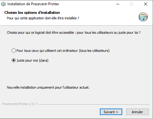 Configuration Prezevent Printer