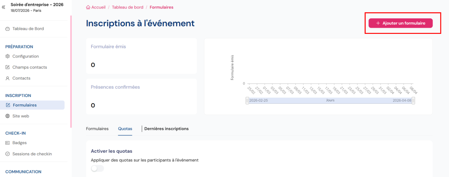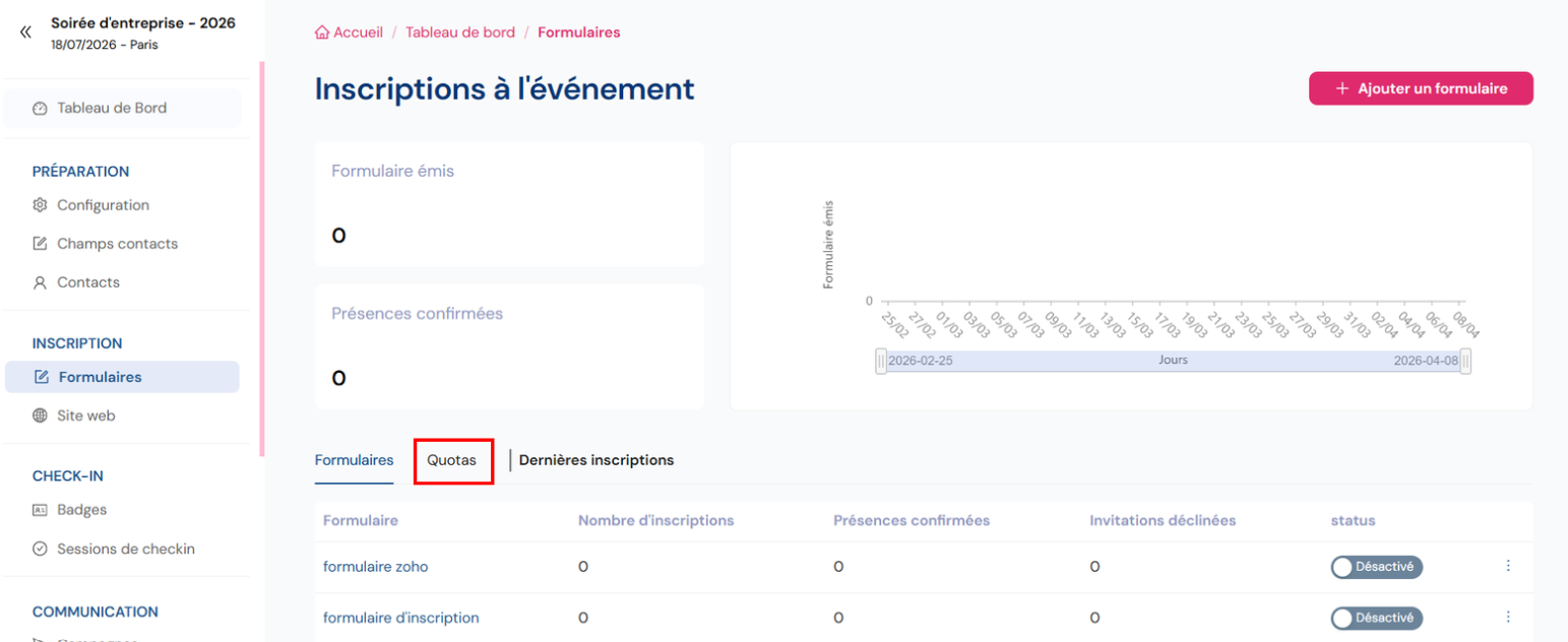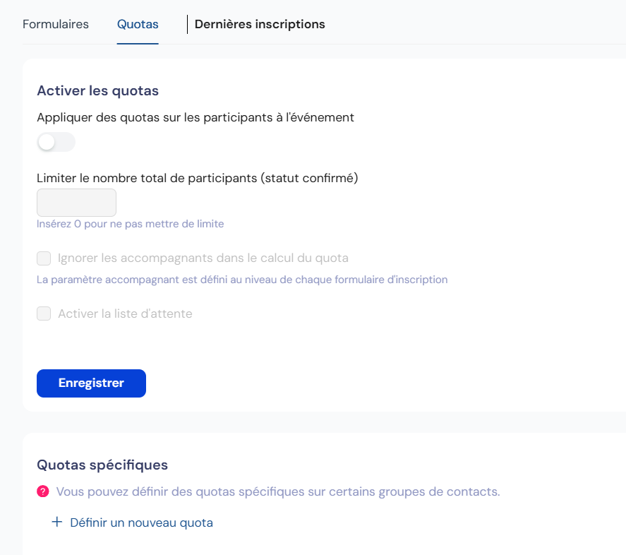 Vous arriverez sur le paramétrage des quotas de l'événement :