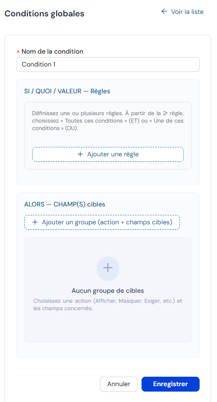 Vous n'aurez plus qu'à nommer votre condition et définir les champs de contact concernés.