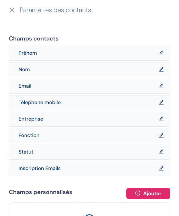 Pour exporter les données après-événement : Cliquez sur "Contacts" puis sur les trois points en haut à droite : Cliquez sur "Exportez des contacts" : Sélectionnez les contacts et les champs à exporter, puis valider : Ouvrez ensuite le fichier ...