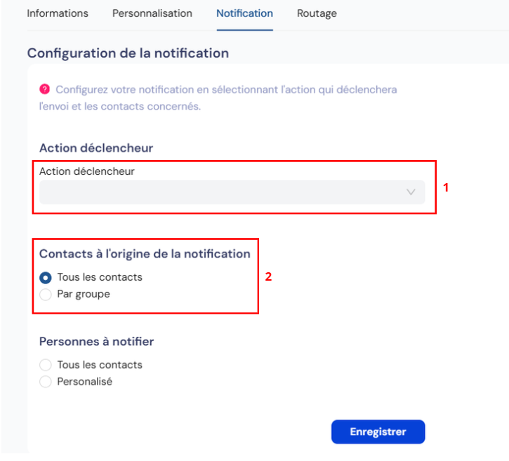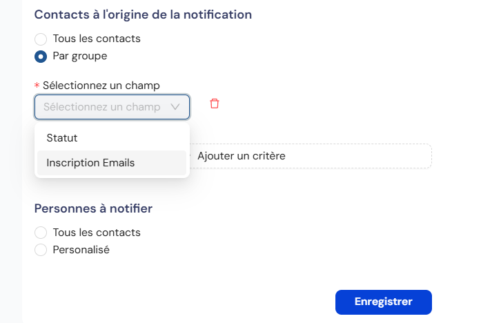 2. Vous pouvez personnaliser l'envoi de votre notification selon les champs de contacts :