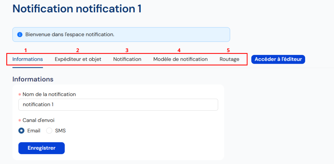Pour une notification SMS, lorsque vous cliquez sur "Créer ma notification" vous arriverez directement dans le paramétrage :