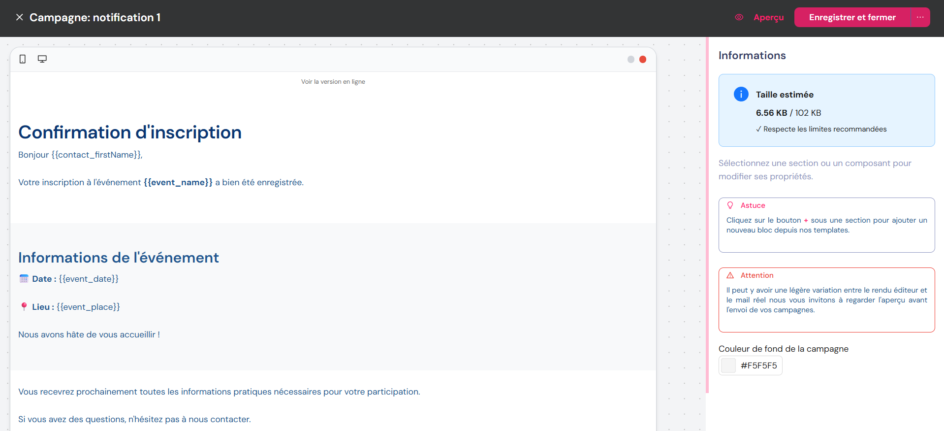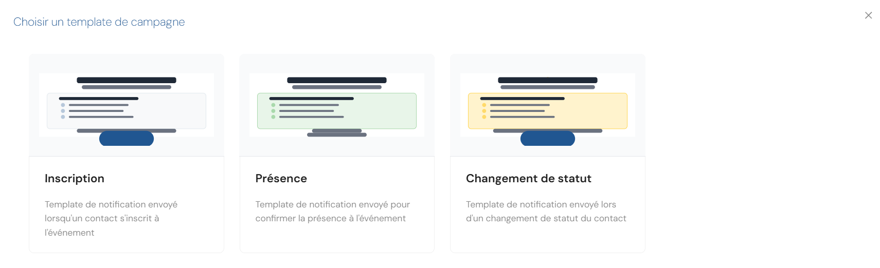 Pour une notification Email, lorsque vous cliquez sur "Créer ma notification", 3 templates sont proposés :