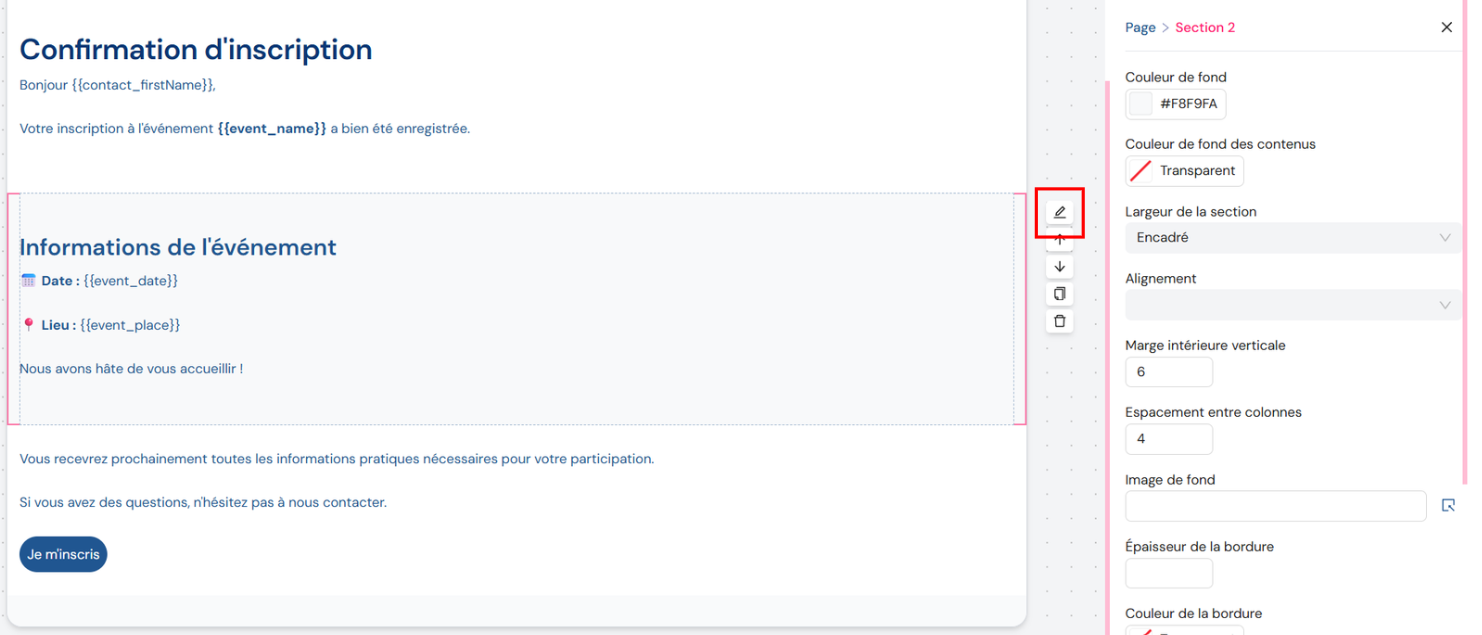 Si vous cliquez sur le logo "édition" dans le 2. , vous aurez un onglet qui s'affichera à droite :