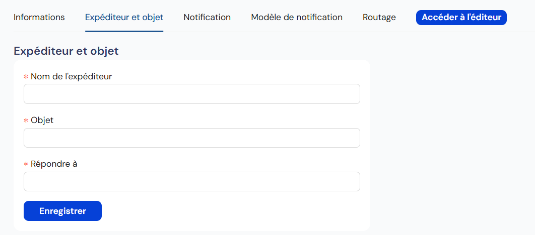 En cliquant sur "Expéditeur et objet", vous pouvez modifier le nom de l'expéditeur et le nom de l'objet :