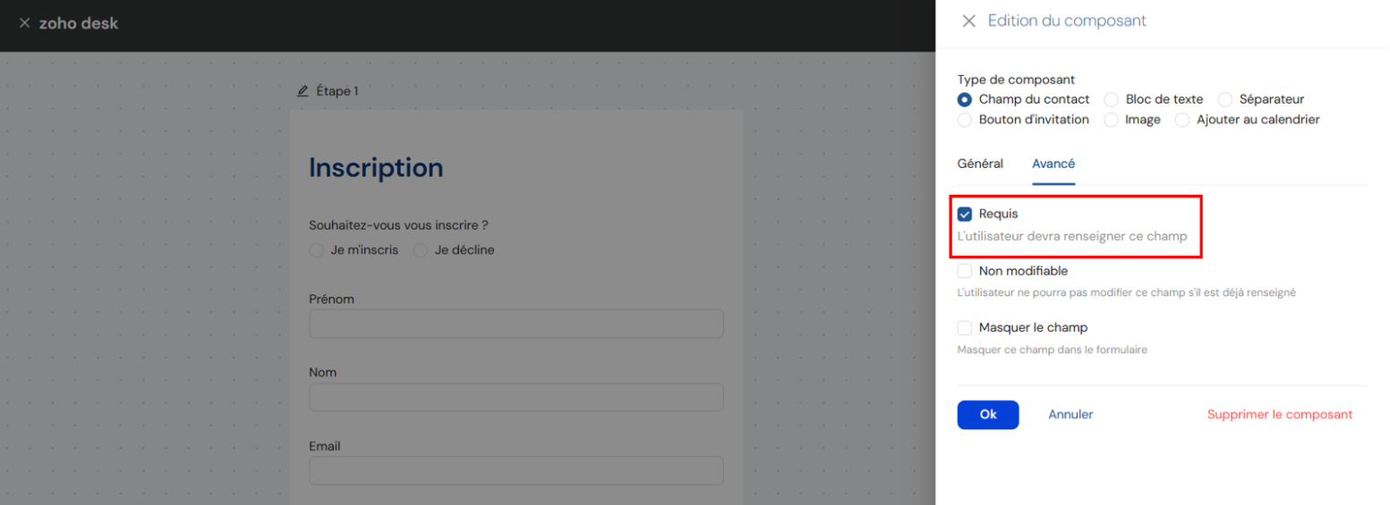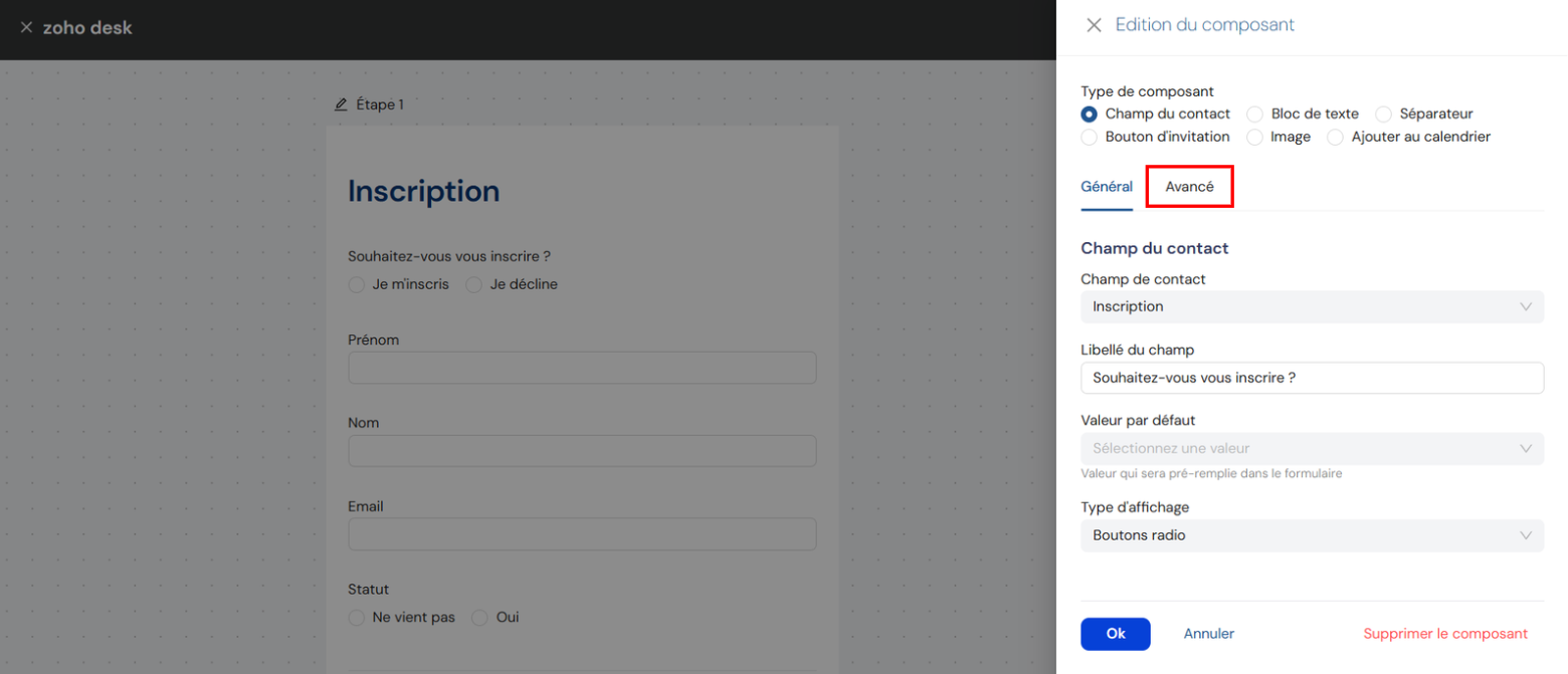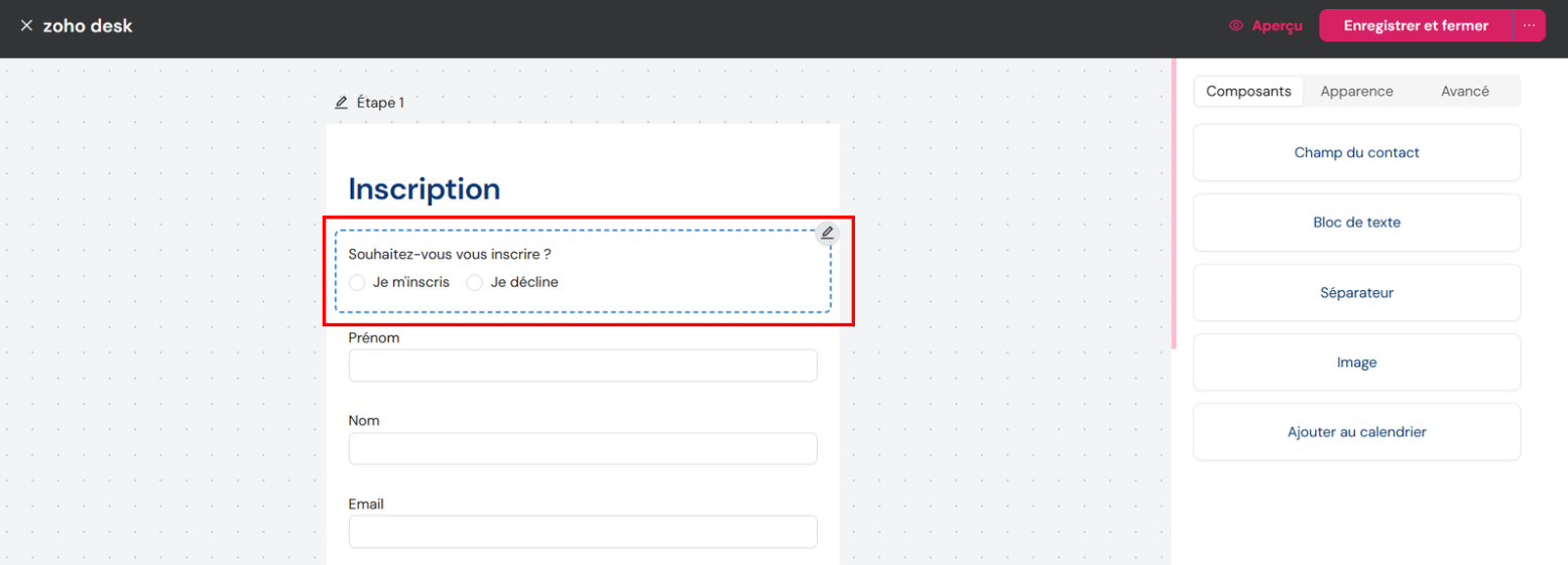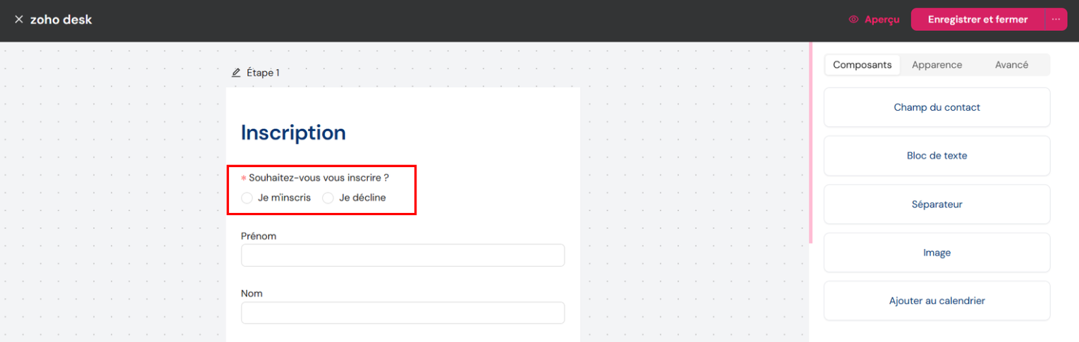 Champs conditionnels : ajouter un champ conditionnel "inscription"