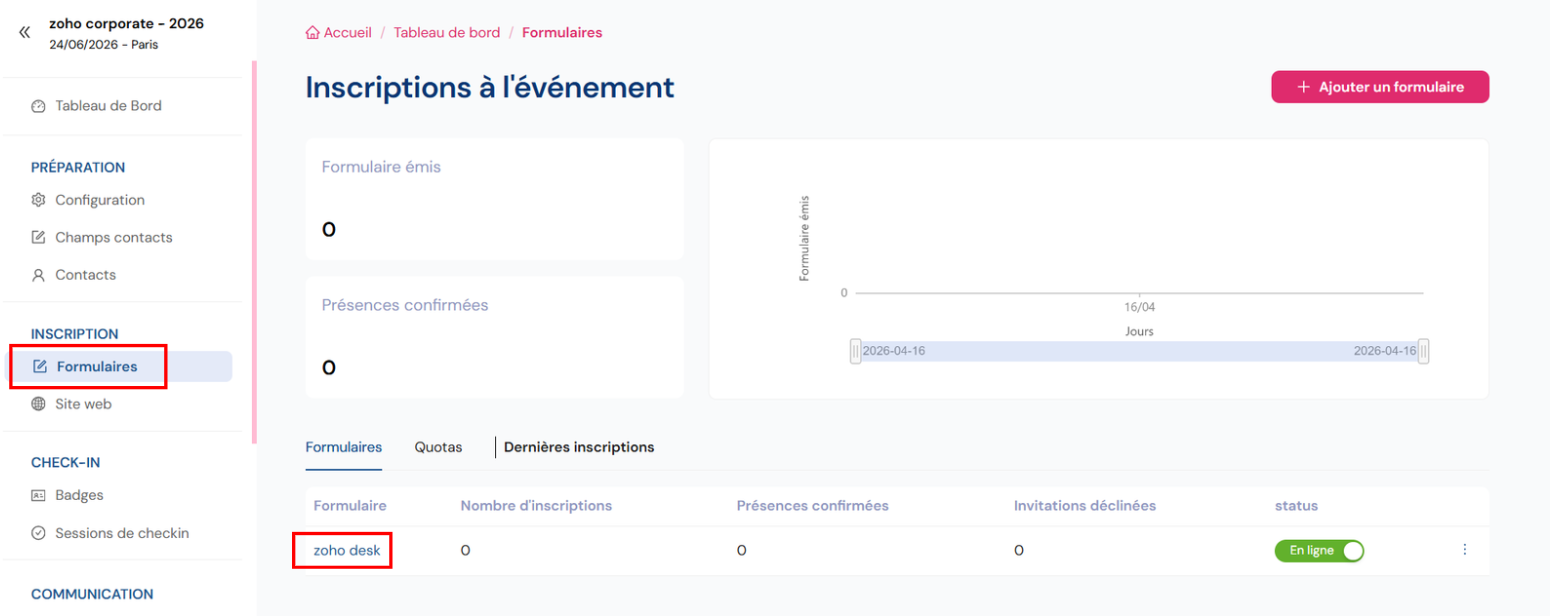 - Allez dans l'onglet "Formulaires" puis cliquez sur un formulaire :