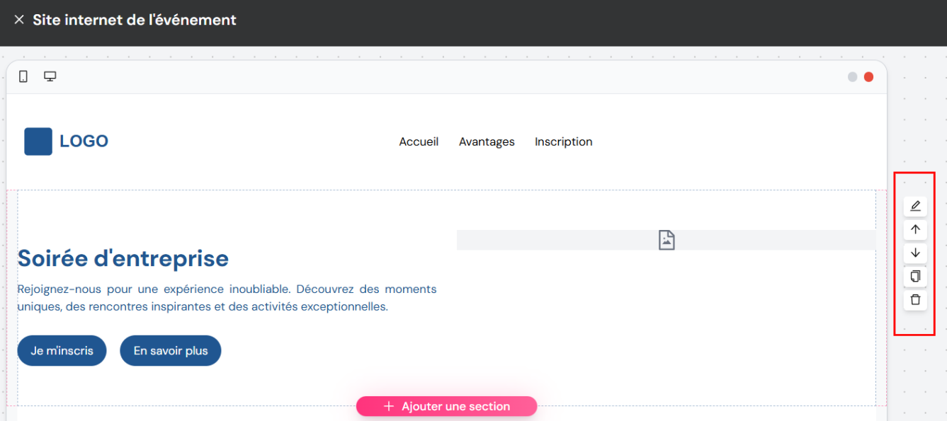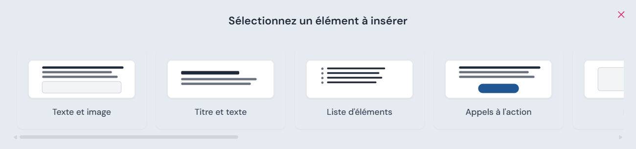 Lorsque vous cliquez sur "Ajouter une section", plusieurs templates sont proposés :