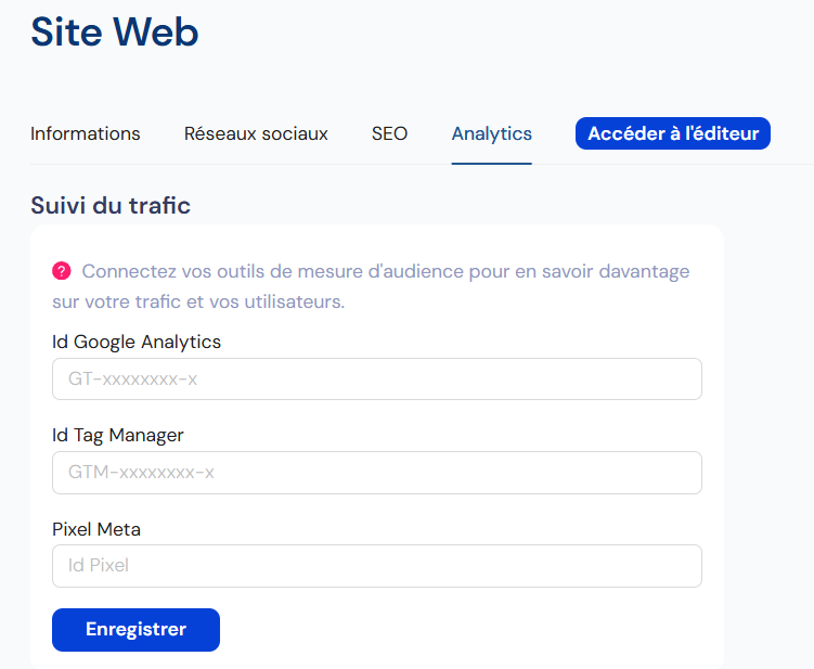 Dans l'onglet "Analytics" (4), vous pouvez ajouter :