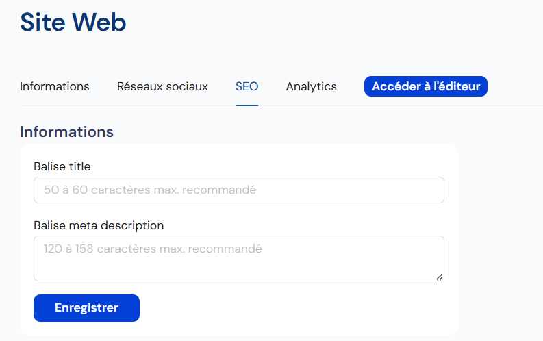 Vous pouvez éditer votre site web en cliquant sur "Accéder à l’éditeur" :