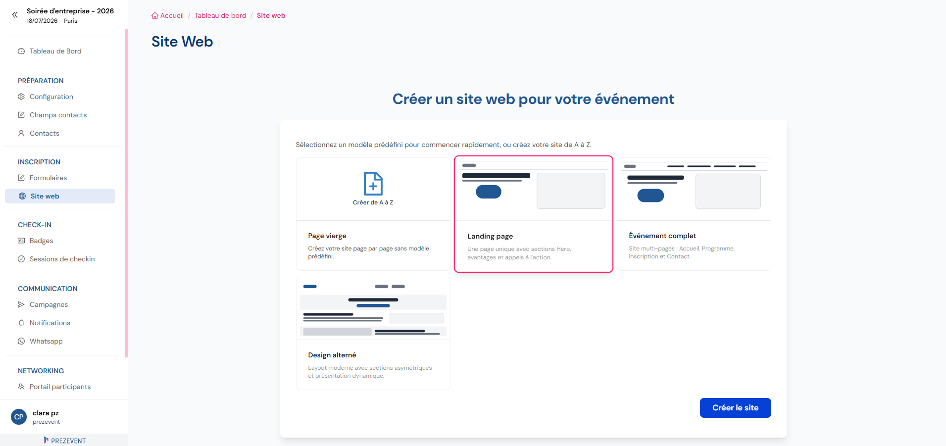 - Choisissez votre template (ou choisissez de partir d'une une page vierge)